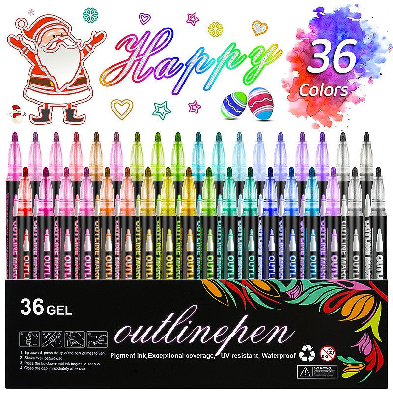 Valve-Type Double Line Outline Markers 8/12/24/36/48/60 Colors